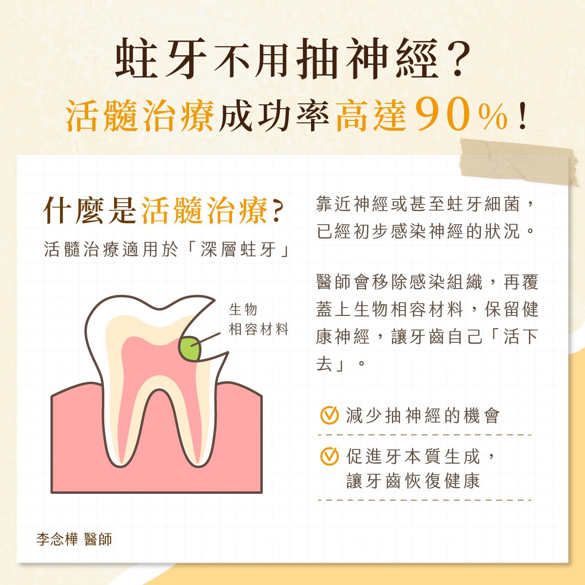 讓牙齒神經繼續「活著」,而非被迫「抽離」